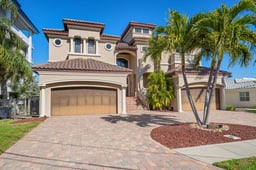 Nestled on one of Clearwater Beach’s most desirable residential streets, this stunning Mediterranean-inspired estate offers the rare combination of architectural presence, privacy, and resort-style outdoor living just moments from the beach. Designed for those who value both elegance and entertaining, the home makes a striking first impression with its grand façade, paver drive, and multiple garage bays, setting the tone for refined coastal living. Inside, expansive open living spaces are filled with natural light and framed by detailed millwork, tray ceilings, and rich flooring throughout. The heart of the home is a chef’s kitchen designed to impress, featuring custom cabinetry, dramatic stone countertops, a professional-grade gas range with custom stone hood, premium appliances, and an oversized island that anchors the space, perfect for both everyday living and large-scale entertaining. The kitchen flows seamlessly into generous dining and living areas, creating an inviting atmosphere for gatherings. The private primary suite is a true retreat, offering a spacious bedroom, serene finishes, and a spa-inspired bath with dual vanities, soaking tub, and oversized walk-in shower. Additional bedrooms and baths are thoughtfully designed to accommodate guests or family with comfort and privacy. Step outside to a private outdoor living enclave designed to rival boutique resorts. A lagoon-style pool and spa are surrounded by lush landscaping, sun shelves, multiple seating areas, and ambient lighting, ideal for daytime relaxation or evening entertaining. Covered terraces and balconies extend the living space outdoors, creating an effortless indoor-outdoor lifestyle rarely found so close to Clearwater Beach. Enhancing the home’s appeal is a fully integrated solar energy system designed to power the entire residence, seamlessly supporting modern, energy-efficient living. This exceptional residence delivers the feel of a private coastal estate while offering convenient access to world-class beaches, dining, boating, and entertainment. A rare opportunity to own a statement home where architecture, lifestyle, and location come together seamlessly.
